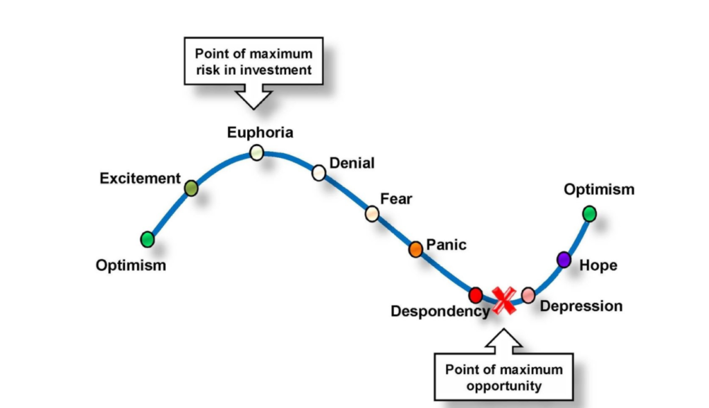 For commodities, looking back at the market cycle above, we are most probably near the bottom of the market in the “fear” just before desperation and panic.